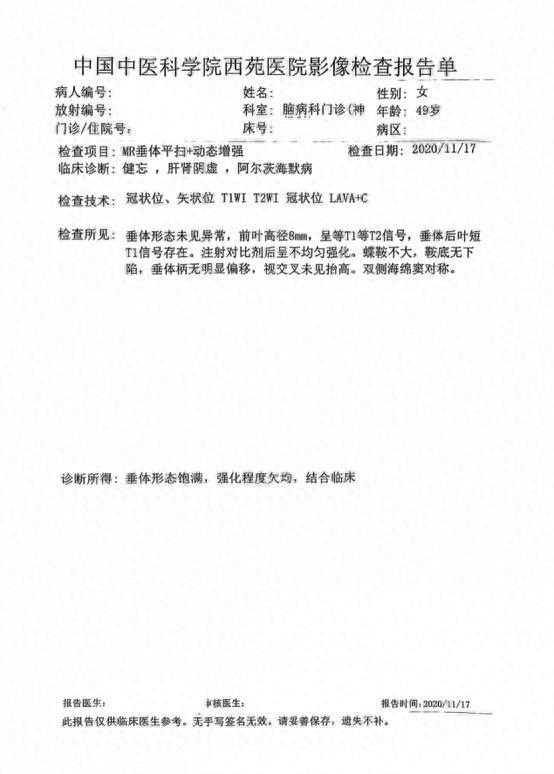 当事人的儿子郭先生告诉信号新闻(0532-80889431),自己的母亲是北京一所中学的教师。“2019年初,我妈出现了明显记忆衰退症状,总是忘这忘那的。”据介绍,2020年11月,49岁的徐女士在中国中医科学院西苑医院被诊断为阿尔茨海默病,2021年经北大医院二次确诊,病情呈进行性加重且不可逆。“当时已经严重到无法正常教学、认不清学生的程度,需长期服药维持。”郭先生说。
